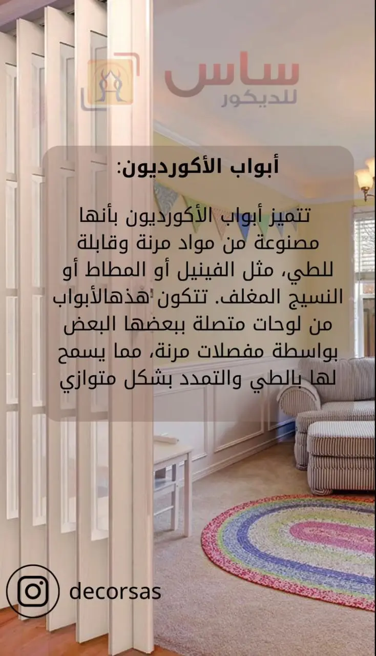2. *أبواب الأكورديون*: تتميز أبواب الأكورديون بأنها مصنوعة من مواد مرنة وقابلة للطي، مثل الفينيل أو المطاط أو النسيج المغلف. تتكون هذه الأبواب من لوحات متصلة ببعضها البعض بواسطة مفصلات مرنة، مما يسمح لها بالطي والتمدد بشكل متوازي. تعتبر أبواب الأكورديون خيارًا عمليًا واقتصاديًا للمساحات الصغيرة أو التقسيم المؤقت للغرف .