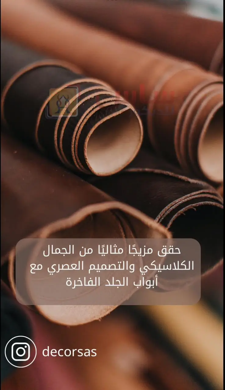 1. *أبواب الجلد*: الأبواب المصنوعة من خامة الجلد لها تاريخ طويل وتقليدي في بعض الثقافات حول العالم. تتميز هذه الأبواب بأنها مصنوعة من خامات جلدية او شبيهة بالجلدية . قد تكون مزينة بنقوش أو تطريز لإضافة لمسة فنية وجمالية. تعتبر الأبواب الجلدية خيارًا أنيقًا وغير تقليدي للمنازل أو المكاتب .